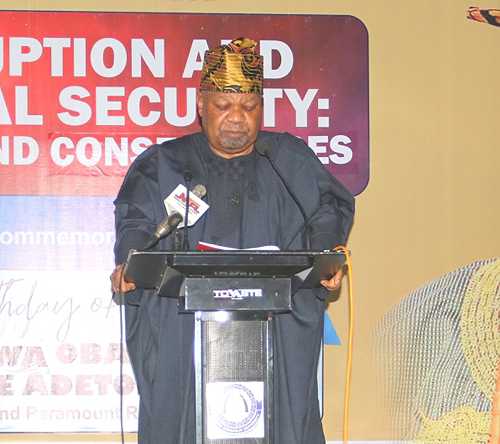 While giving the vote of thanks, the Chairperson of the Governing Board of Oba (Dr.) S. K. Adetona Professorial Chair in Governance, Princess Adetoun Adetona-Daramola, appreciatedeveryone that identified with and  felicitated her father on the auspicious occasion. In attendance at the event held at the Ogbagba Hall of the Oba Sikiru Kayode Adetona School of Governance Studies (NIPSS-OSKASOGS), Ago-Iwoye were the Principal Officers of the University, traditional rulers, captains of industries and eminent personalities from all walks of life.